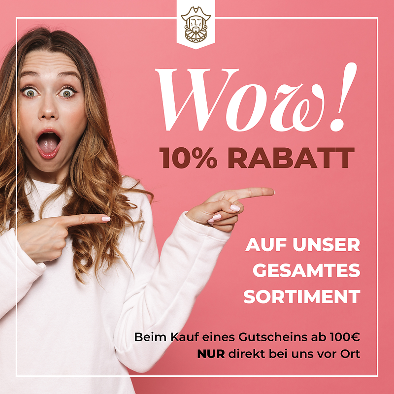 Zu jedem Gutschein ab 100 € erhalten Sie einen Genussgutschein über 10 % auf unser gesamtes Sortiment – gültig bis zu einem Einkaufswert von 500 €.