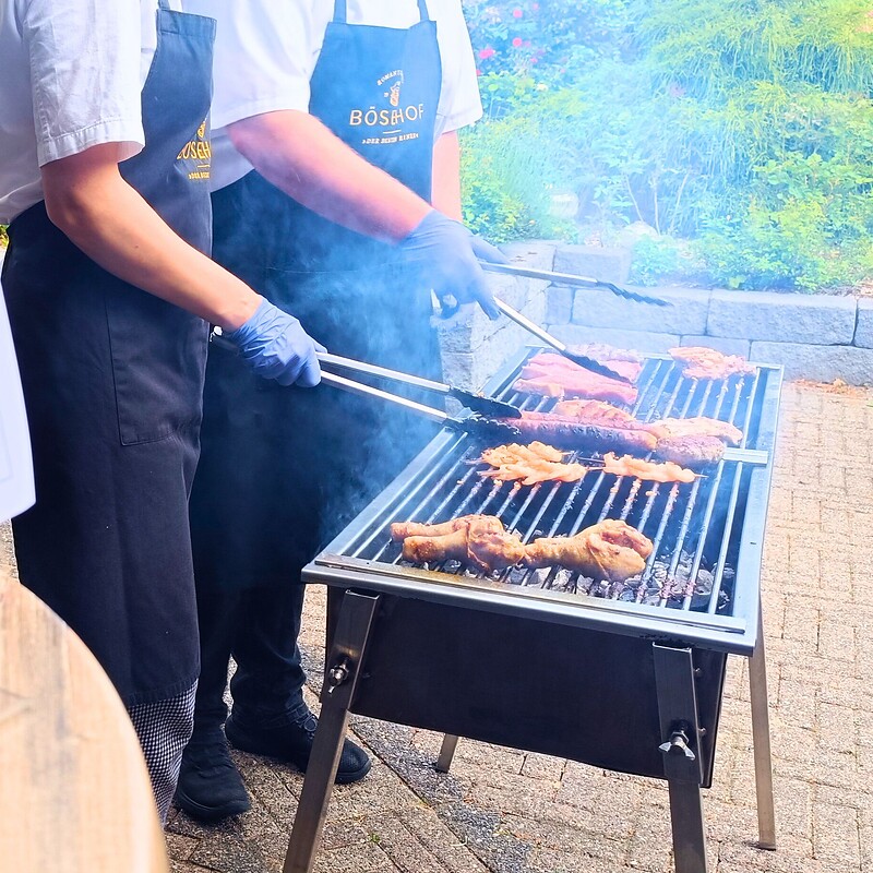 Für unsere vegetarischen Gäste bieten wir ebenfalls eine vielfältige Auswahl an gegrilltem Gemüse und köstlichen vegetarischen Alternativen.