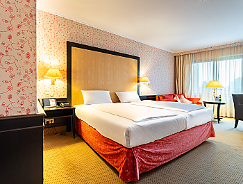 Das Zimmer verfügt über einen Balkon, ein Bad mit Dusche bzw. Badewanne (nach Verfügbarkeit), Haartrockner, Schminkspiegel, flauschigem Bademantel und Frottee-Schuhen sowie Fernseher, digitaler Gästemappe und Safe.