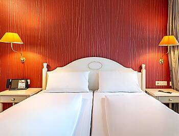 The room has a balcony, a bathroom with shower, hairdryer, make-up mirror, fluffy bathrobe and towelling slippers as well as a TV, digital guest folder and safe. With dressing room or second bedroom and separate living room.