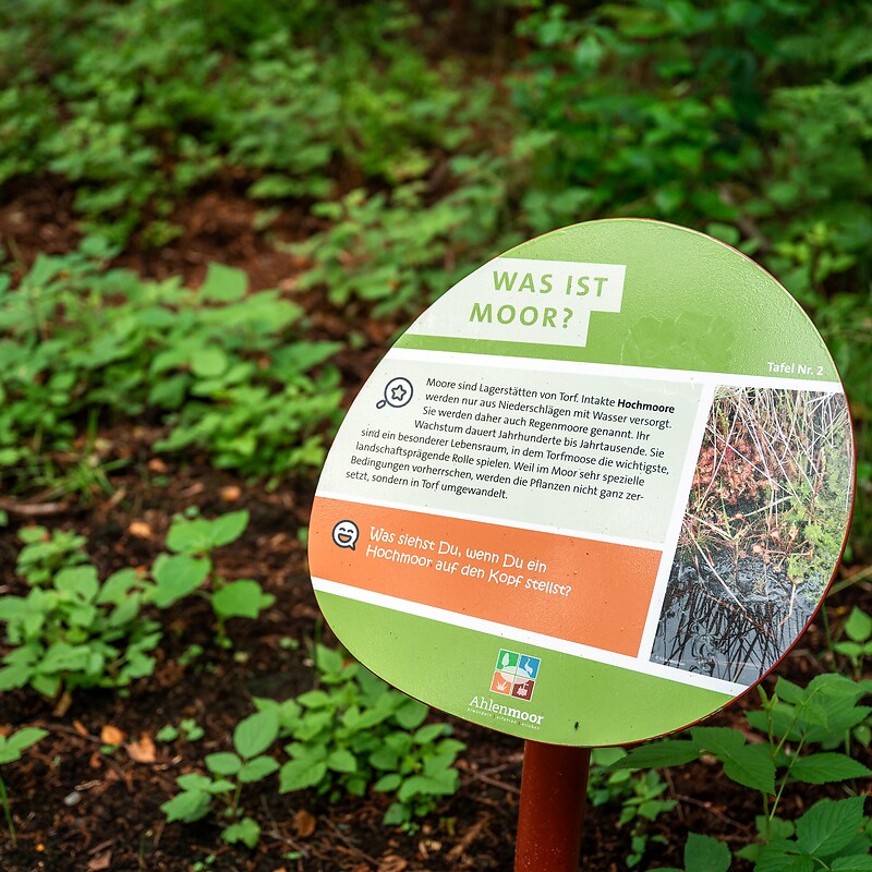 The moor experience trail in the Ahlenmoor offers the opportunity to explore this unique landscape on your own. Along the route, information boards provide interesting insights into the formation of the moor, its plant life and the animal species that have found their habitat here.